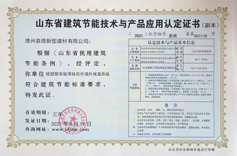 榮獲山東省建筑節能技術與產品應用認定證書,山東省預拌砂漿生產企業備案證書